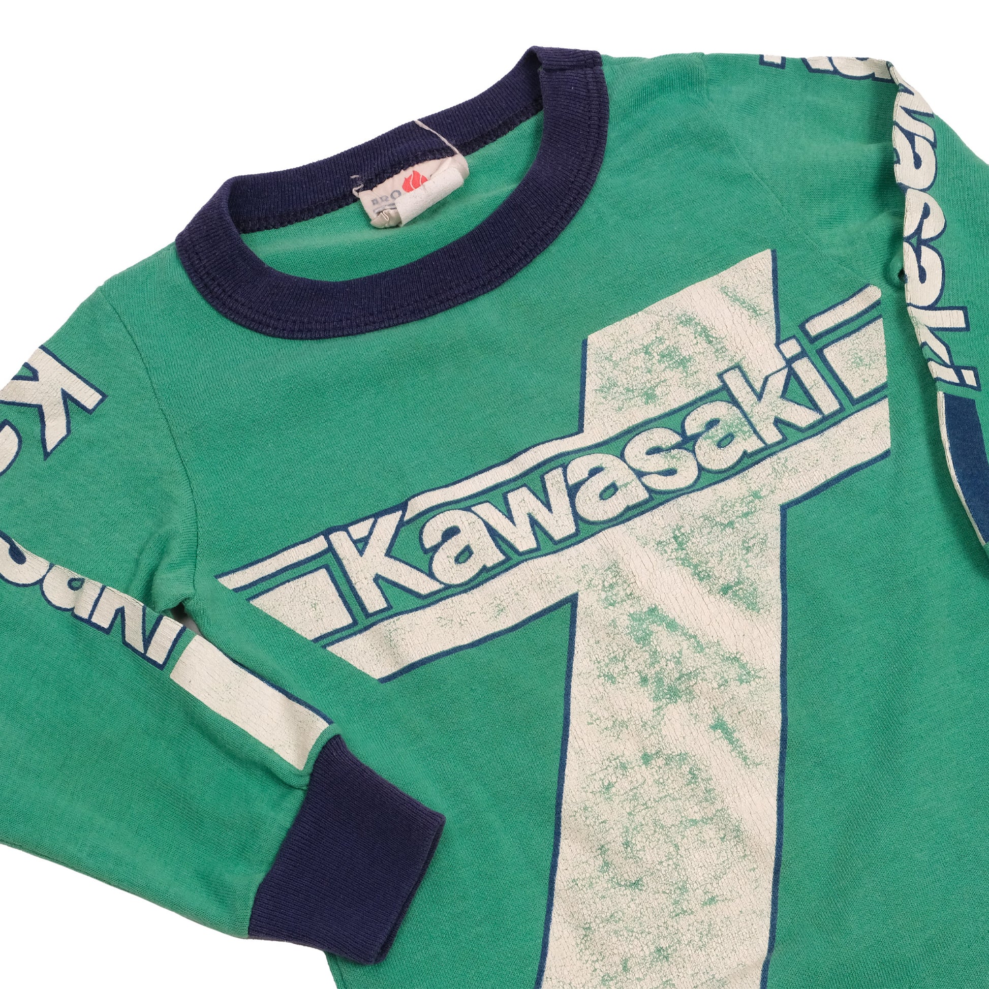 Late 1970s vintage youth kawasaki motocross jersey in good condition. There are a couple of discoloration spots, please see photos.