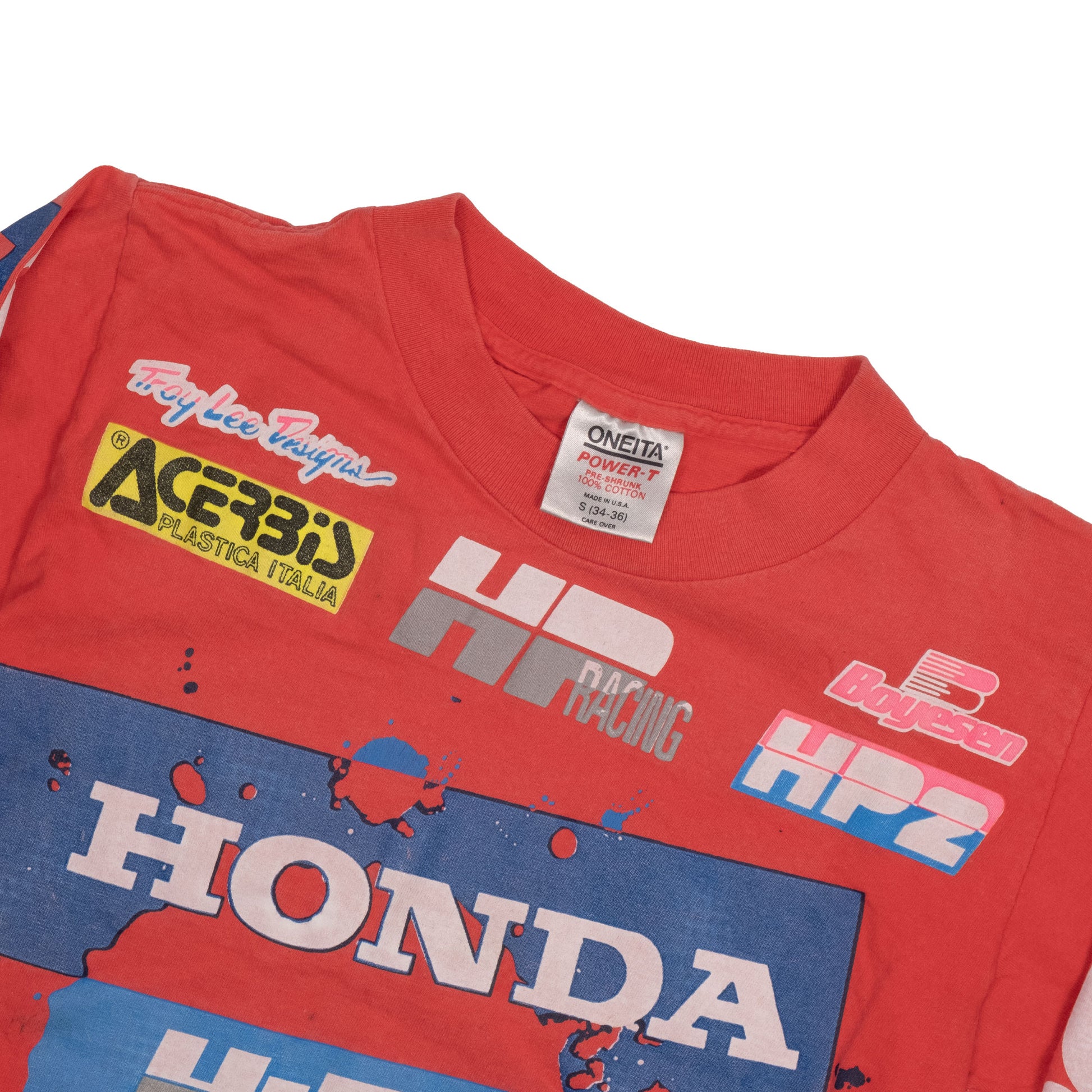 Keeping it old school with this 1980s Honda HiPoint Racing long sleeve. There are some signs of wear and a few spots of discoloration as to be expected with a 40yr old shirt. Grab this classic and head to the closest supercross or motocross race.