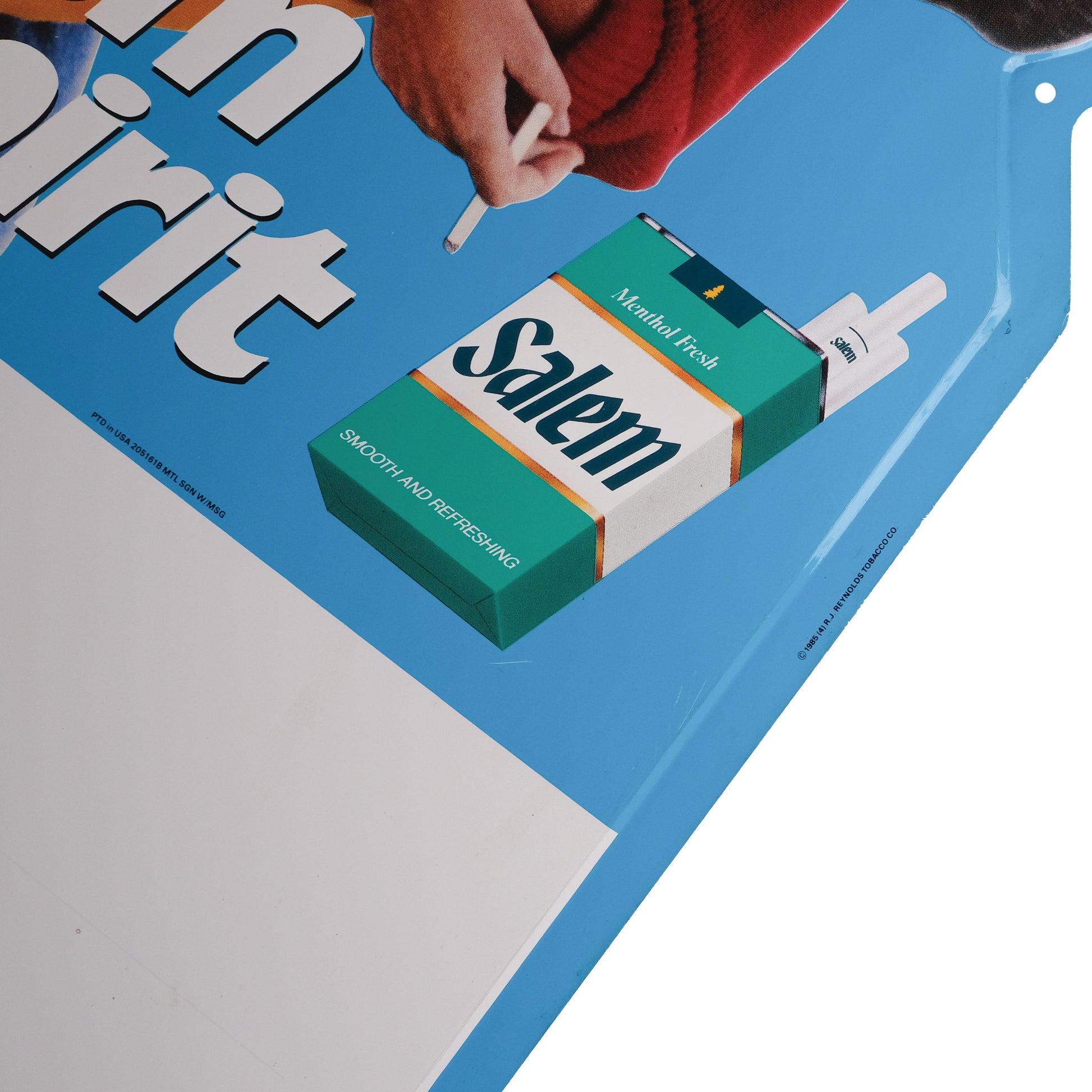1985 Salem Spirit cigarette tin sign in good condition showing some signs of wear, please see images. This would be a great addition to your man cave, garage or bar!