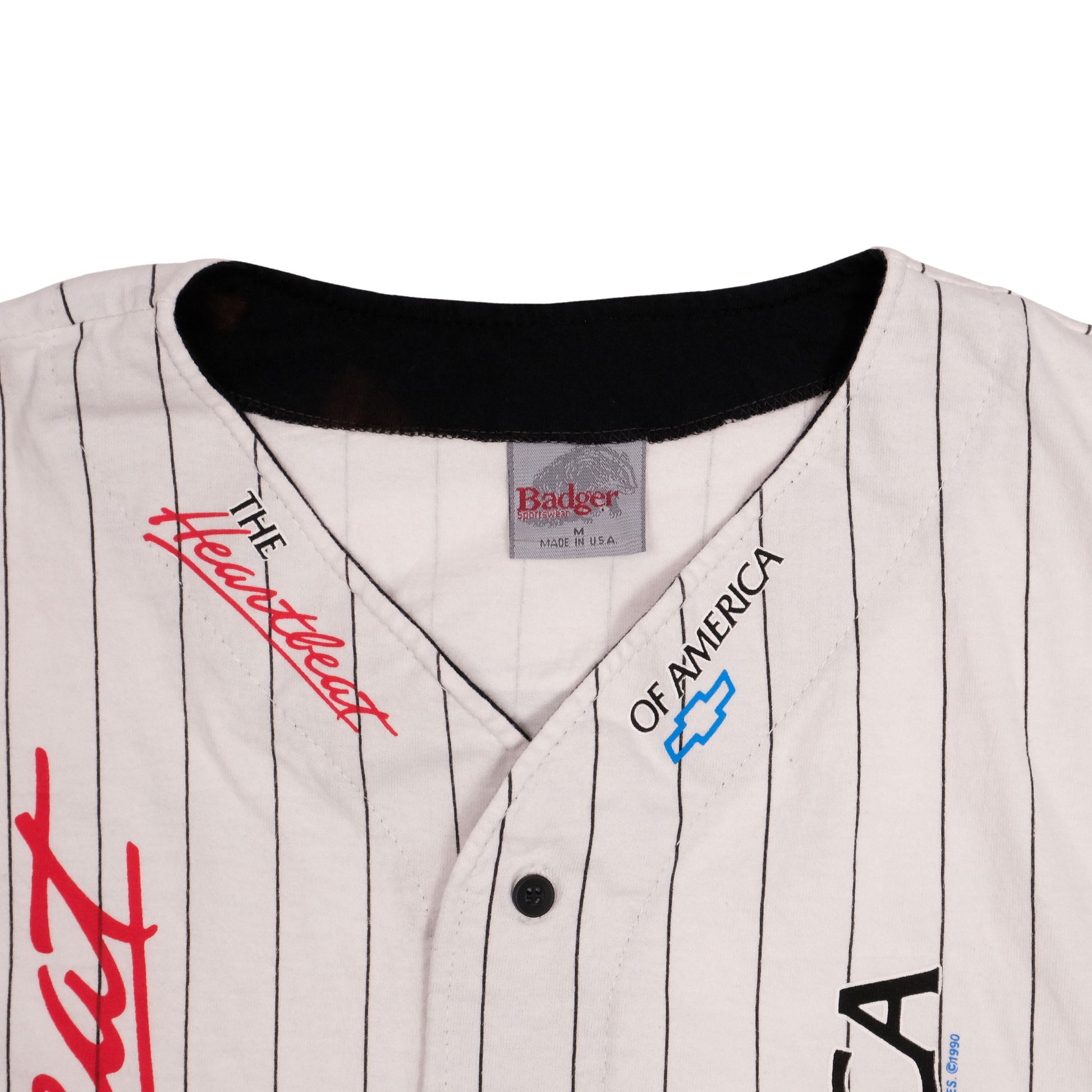 1990 Chevy Heart Beat of America Baseball Jersey. This is a rare gem, we've only come across one of these and we knew it'd fit great in our collection of Vintage Chevy apparel.