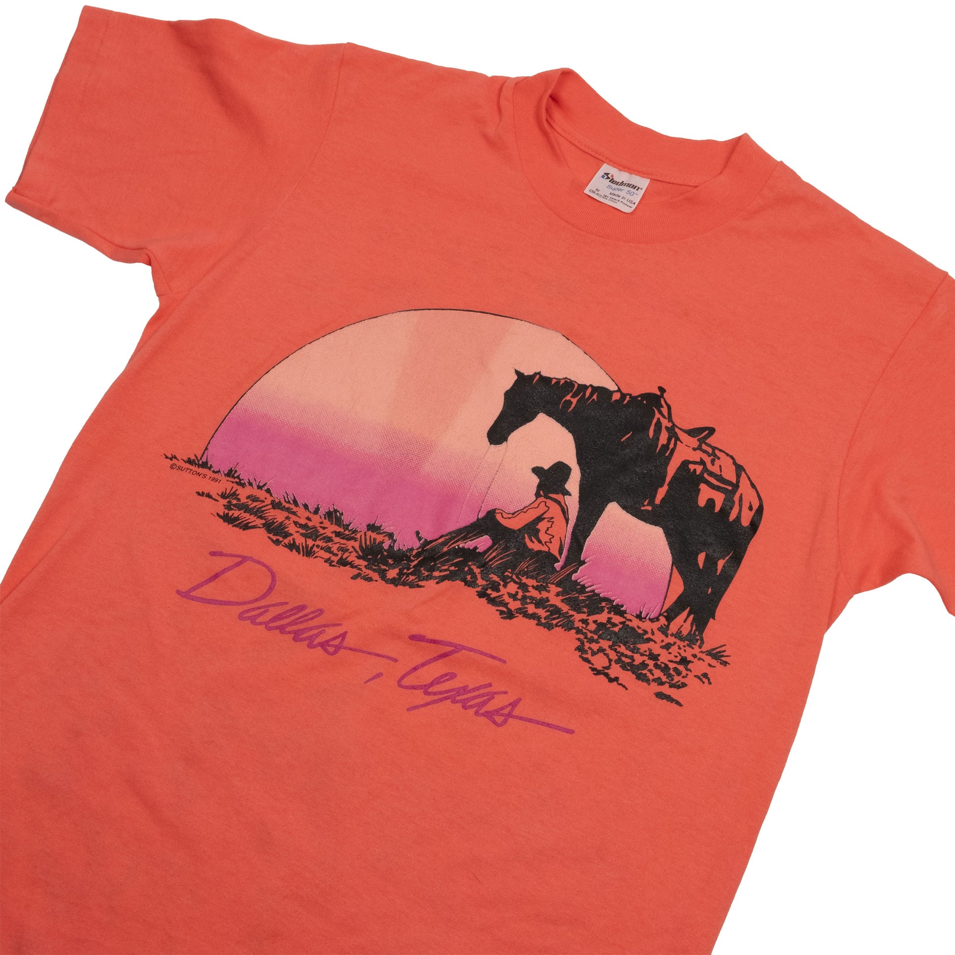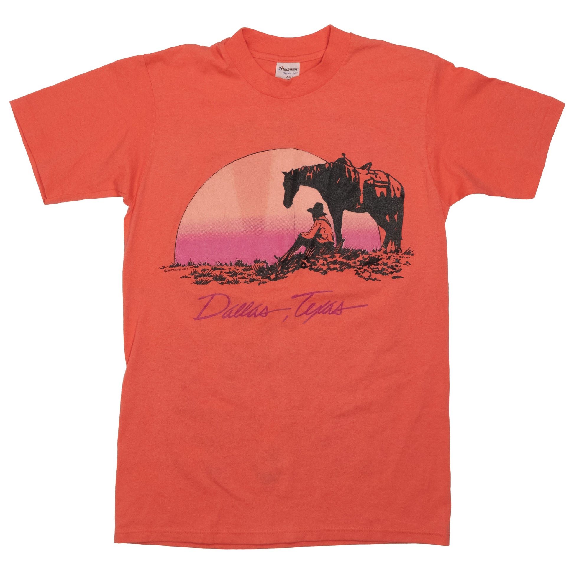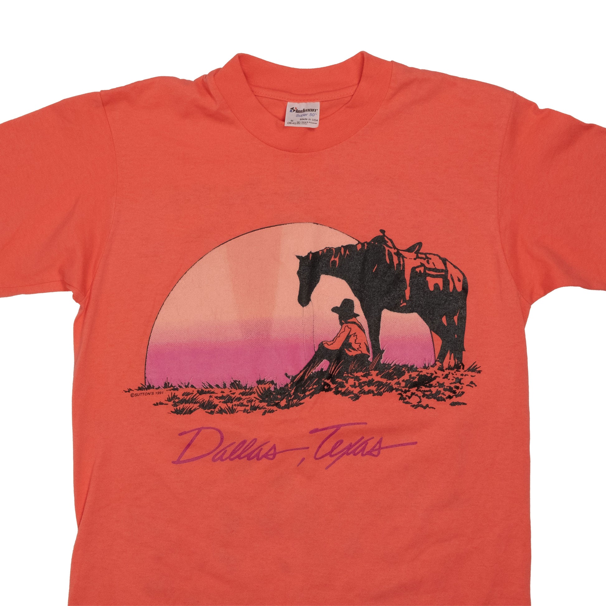 It doesn't get much more western than a man and his horse watching the sunset in the great state of Texas. This vintage 1991 Dallas, Texas Cowboy shirt is a one of a kind. We are speculating but it appears someone decided to do a 2nd floral back print on this shirt to make it their own.