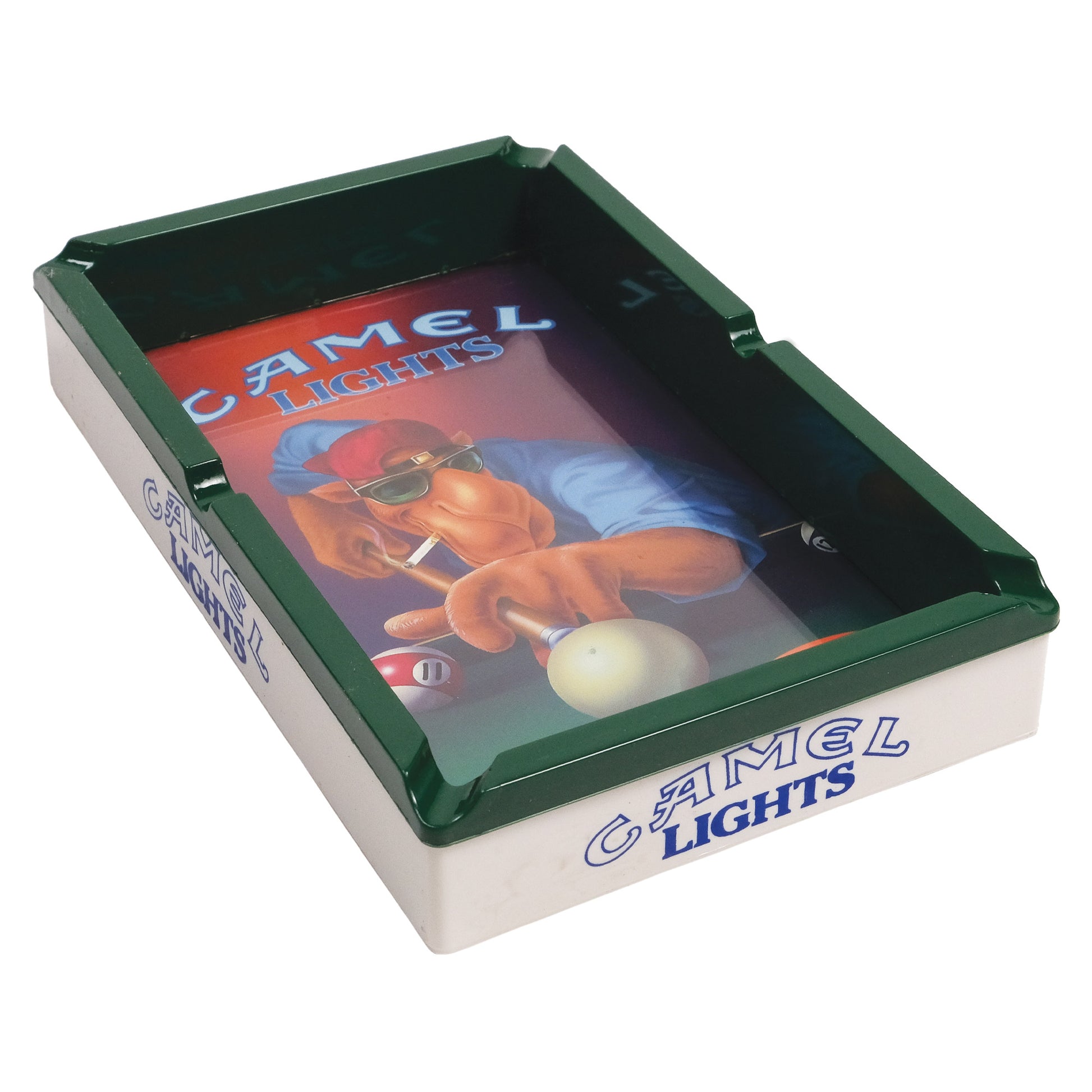 We managed to come across the mother load of 1990s camel marketing products and this pool table ash tray was one of our favorite finds from the day! This new old stock Camel pool table ashtray is still in the original packaging and ready to be put to use.