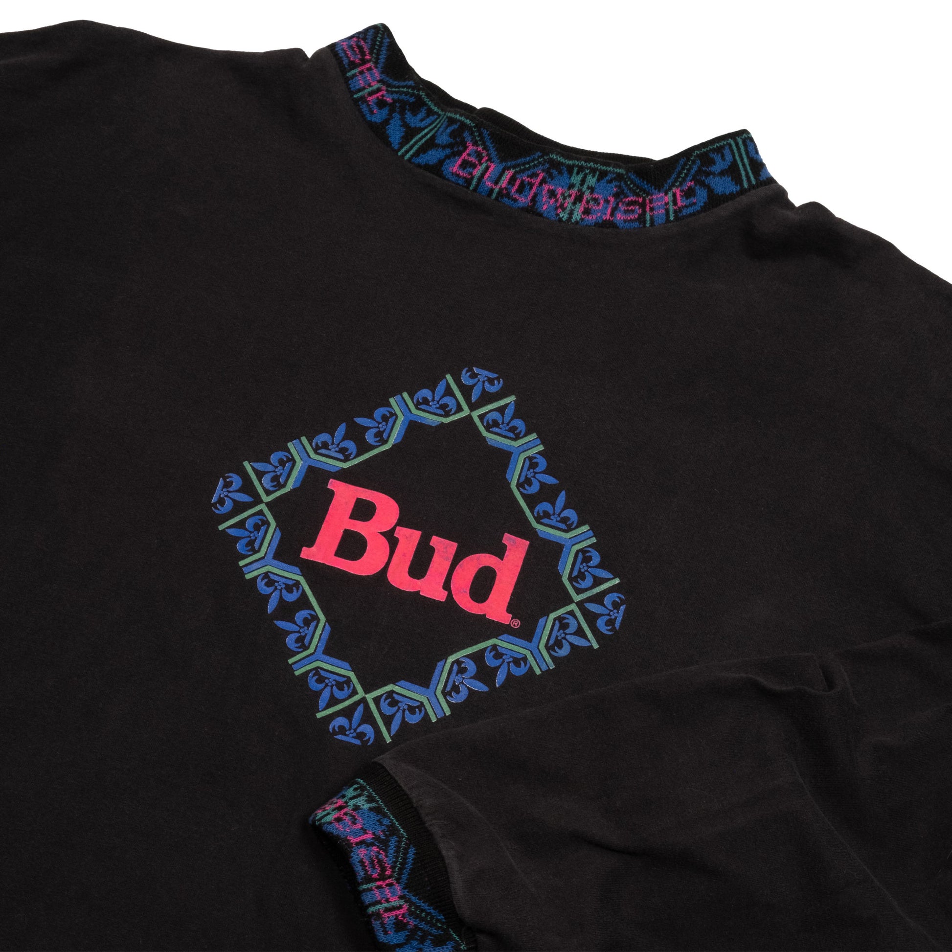 Hop into the time machine and head back to the 1990s with this Budweiser Fleur De Lis long sleeve. This might be the coolest vintage Budweiser shirt we've found to date! There are a couple small spots on the body with a slight discoloration but hardly noticeable.