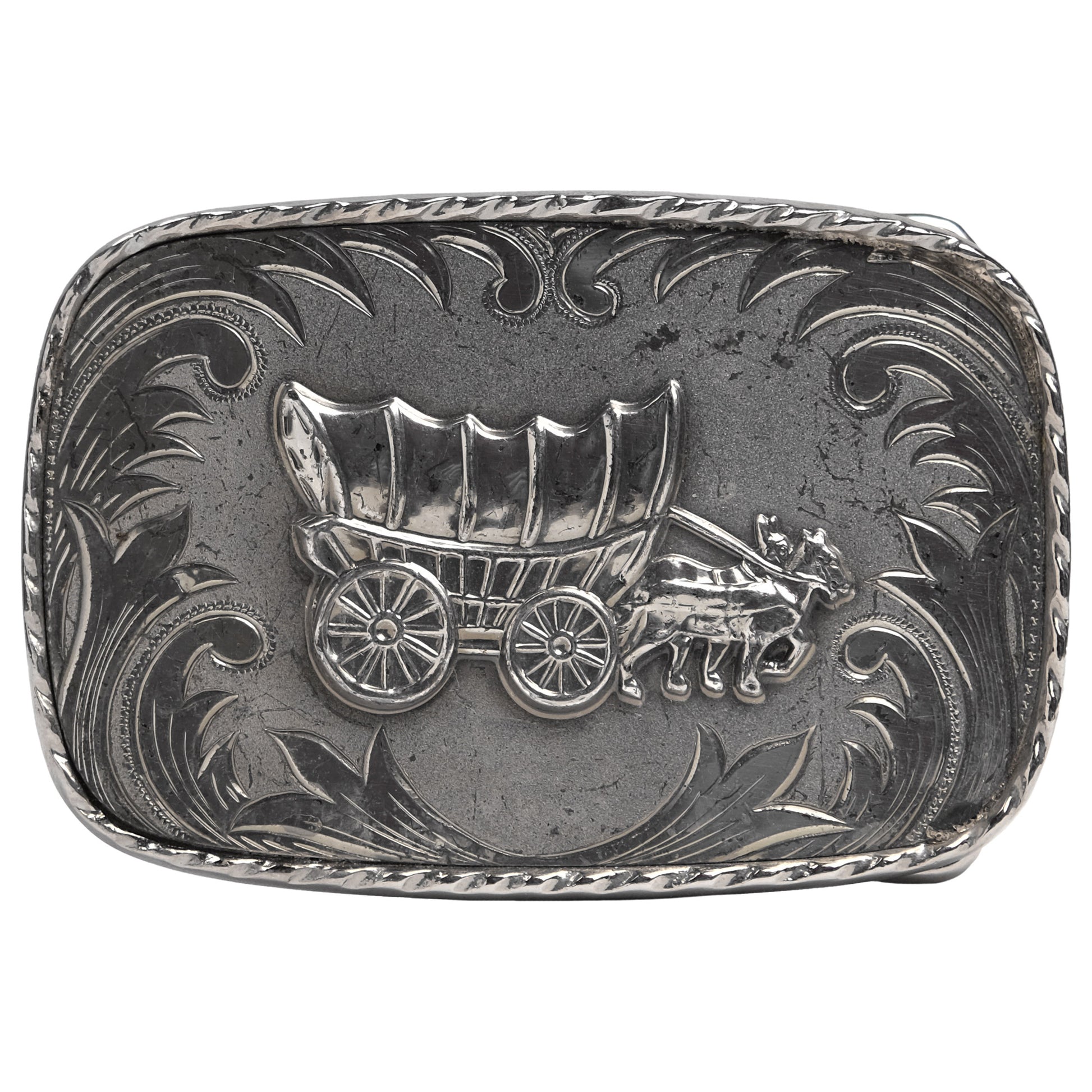 Vintage western covered wagon belt buckle in great shape, some minor signs of wear.